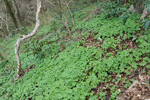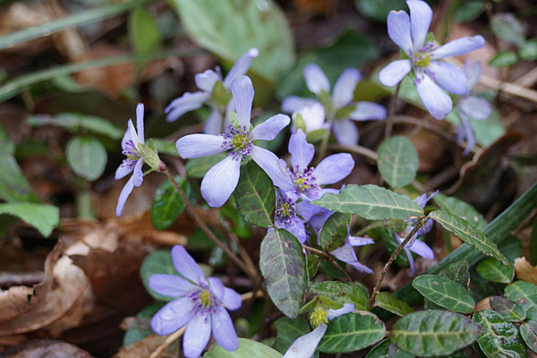 日本海側の雪が多いところに咲くトキワイカリソウも