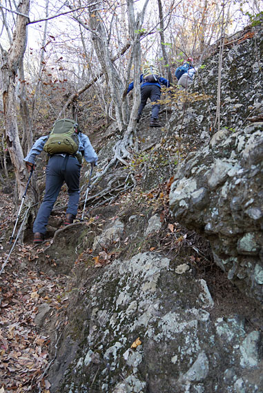 下って、登り返す最初のこの岩場が要注意!