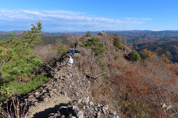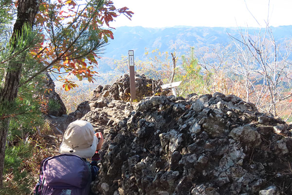 山頂手前に岩場が…
