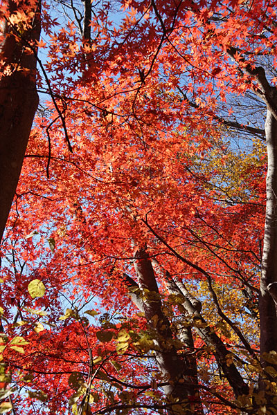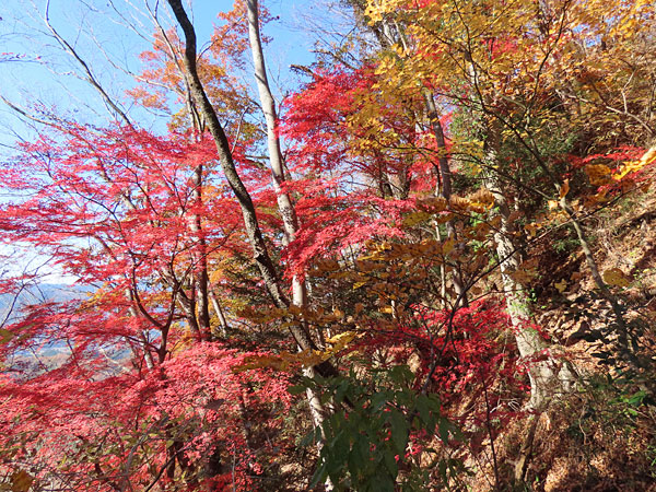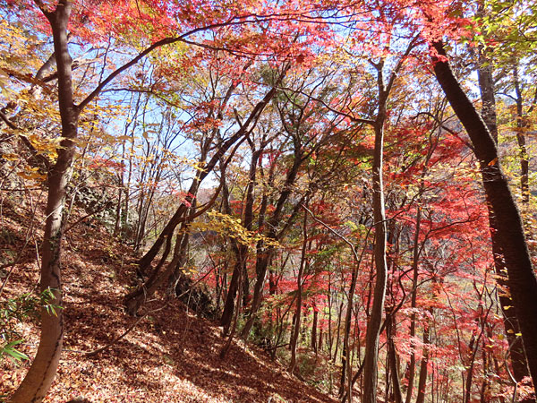 傾斜が緩やかになると一面モミジの紅葉になりました