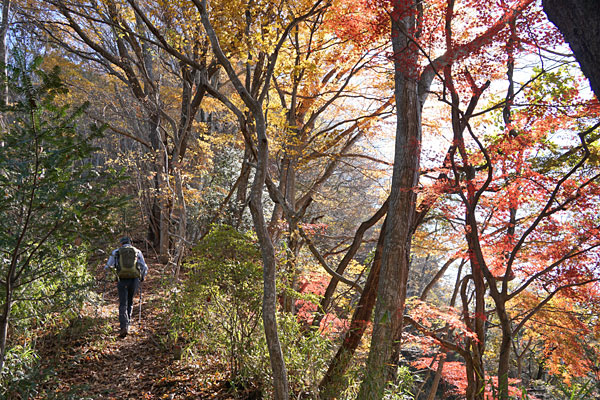 秋色に染まった登山道