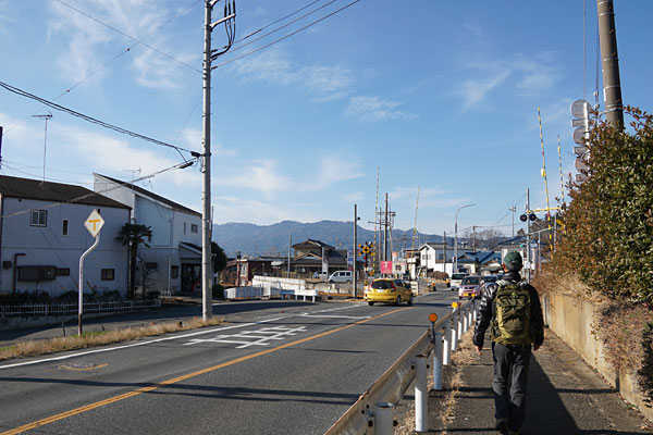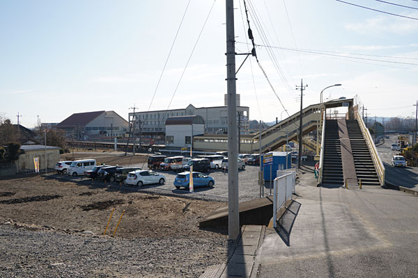 駅の歩道橋を降り、振り返って見た桜沢駅