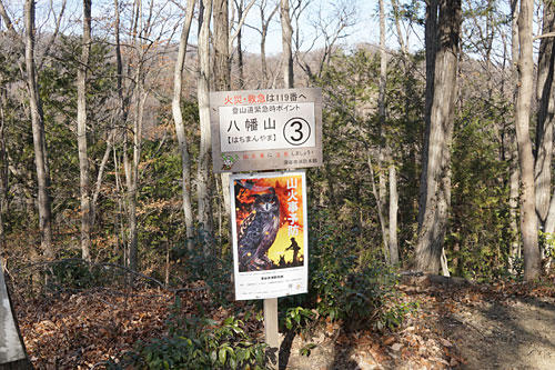 「登山道緊急時ポイント 八幡山③」のピークに到着