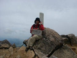 ![]() 天気も回復し、登り終えた充実感でいっぱい。避難小屋で出会った男性に感謝! |