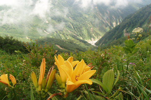 登山道に咲くニッコウキスゲ