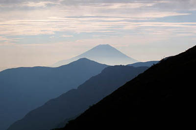 | 薊畑分岐より上河内岳から光岳に続く山並み |