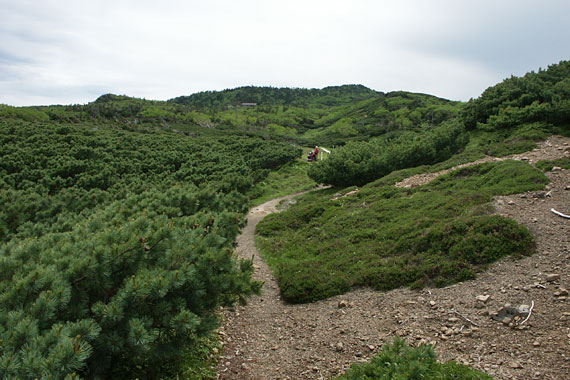 こわ~い!面平を過ぎた辺りで私たちを追い越して行った若い男性が石を鳴らしながらもう下ってきた。「上の方でクマに出合った人がいるそうですよ。」と教えてくれた。易老渡~光岳山頂まで4時間で登り、これから上河内岳まで行くのだそうだ。すご~い!ラジオのスイッチを入れボリュームを最大に。鈴はさらに鳴らして・・・小屋を目指した。静高平までとにかく頑張ろう。