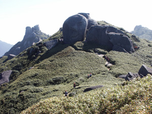 | なぜか、巨岩があっちにこっちに。宿の御主人の話だと白亜紀に海底が隆起したからだそうです。 ↑栗生岳 |