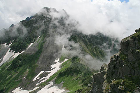 このところ週末の天気が思わしくなく、2週続けて笠ヶ岳登山の計画を見送っている。ならば、天気がよければ笠ヶ岳と槍ヶ岳を一緒に登ってしまおうと上高地からはいり、1日目は憧れの天狗池をめぐり、南岳小屋(泊)。2日目は南岳・中岳・大喰岳と3000m峰をたどり、槍ヶ岳へ登る。さらに、西鎌尾根を歩き双六小屋(泊)。3日目は弓折岳・大ノマ岳・秩父平・抜戸岳をへて笠ヶ岳山荘(泊)。4日目は笠ヶ岳山頂を極め、笠新道を下り新穂高温泉登山口へ下山するというロングコースを計画した。前日までの天気予報は。心弾ませて平湯温泉のあかんだな駐車場へ車を走らせた。が・・・。翌朝、目を覚ますとなんと。だった。ウソでしょう!そのうち止むだろうと気持を持ち直し一番バスで上高地に向かった。