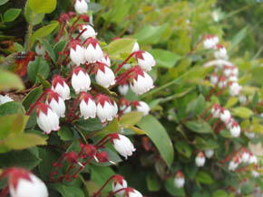 | 一面にイワハゼとゴゼンタチバナが重なり合うように咲いていた | ||