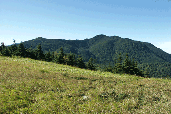 亀甲池から天祥寺原へ向かう登山道の先に蓼科山が見えます