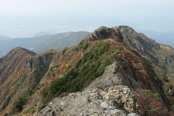 不動岳から振り返って八ツ峰の核心部ルートを眺めます