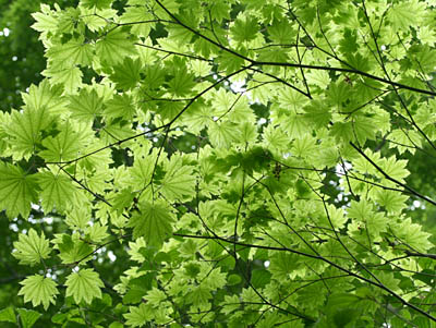 黒姫キャンプ場登山口からはオオバキスミレやタチツボスミレ、ツボスミレが咲いていた。紫色のタチツボスミレは標高700m辺りになると同じ紫色でも踞が長い特徴のナガハシスミレに変わる。オオイワカガミは登山道の右に左に咲き、ちょうど見頃を迎えている。これほどたくさん咲いているのを見たのは初めてだったのでとてもうれしい!チゴユリも足元いっぱいに咲き、オオバキスミレの黄色と咲き競っている。楓とブナ林のさみどりが美しい。。