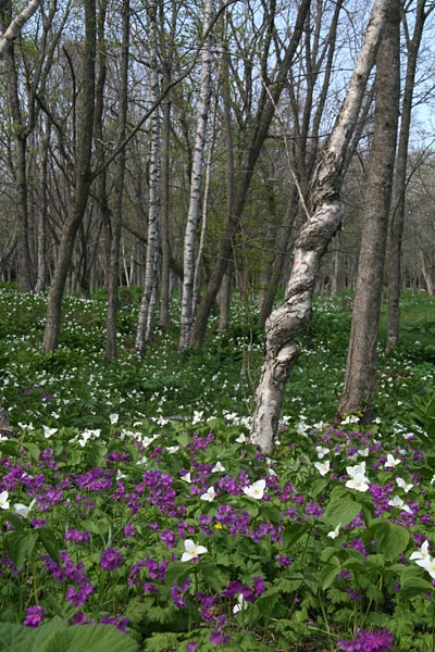 いつだったか、雑誌か、新聞か?忘れたけど林の下一面に咲くオオバナノエンレイソウの写真が載っていた。北海道 アポイ岳の計画していて、ふと写真の光景を思い出した。気になり調べたら、嬉しいことにアポイ岳へ行く方向に群生地があったので立ち寄ることにした。