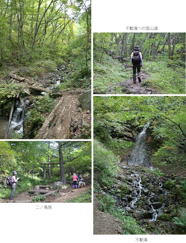 不動滝から急になった道を少し登るとすぐ二の鳥居に出た。ここで山側のコースと合流した。
