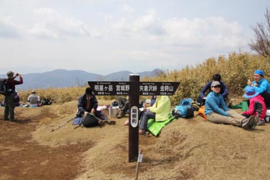 金時山の奥にくっきり見える筈の富士山が、雲に隠れて残念でした。