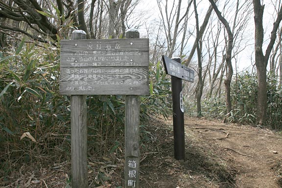 左は明神ヶ岳への道、右へ数分行くと明星ヶ岳。展望はないそうですが行ってみることに・・・。