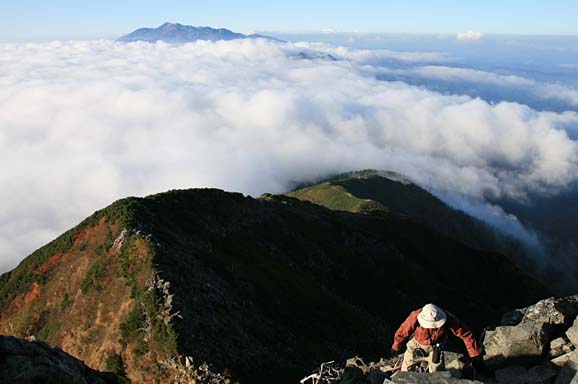 振り返って眺めます。独標からの稜線はまるで鋸の歯のようです