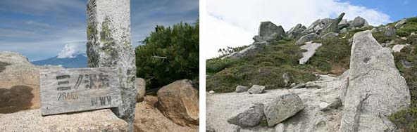 ケルンがある宝剣岳・三ノ沢岳分岐から広い尾根を下り、