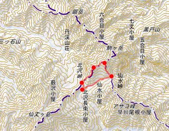 | 北沢峠 | 13:05 | 13:30 | 2030m |