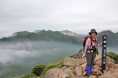 眼下に坊ガツル湿原が見えます。正面に北大船山と大船山。まだまだ遠い。天気がもってくれますように!