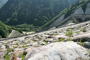 ロックフィルダム(岩塊を積み上げて作ったダム)