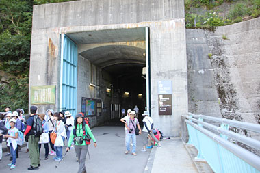 黒部川の流れがなくなり黒部湖の一番奥に到達。右岸を進みます。