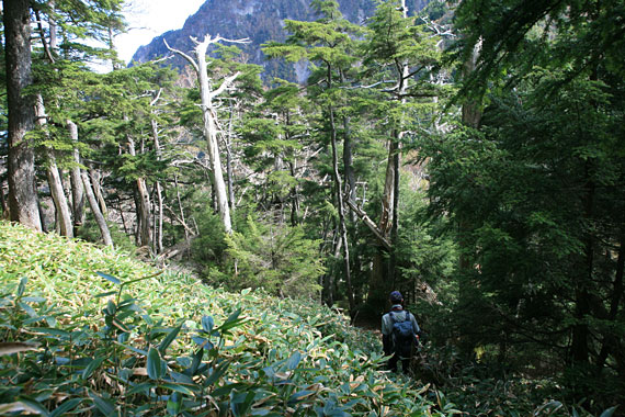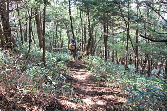 深い笹が生い茂る道を登っていきます
