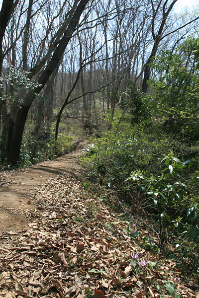 稜線に出るとポツリ、ポツリとカタクリの花が咲きだしました。