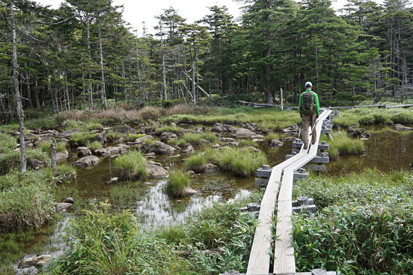 茶臼山の登りも一直線でゴロゴロした道でした。縞枯山ほど長くなかったです。