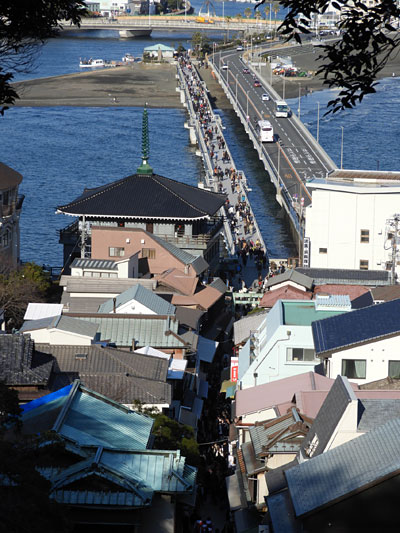 弁天橋を渡るとお土産物屋さんがずらっと並んでいます