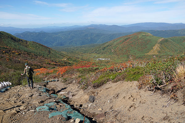 男岳山頂から見たこれから歩く火口原(通称ムーミン谷)