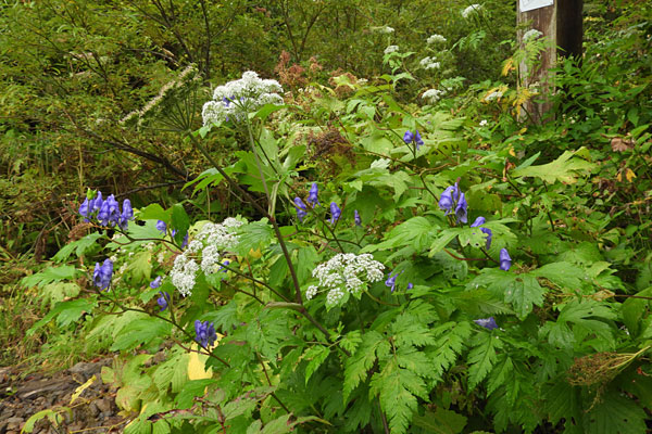 分岐に咲いていたトリカブトとミヤマセンキュウ?