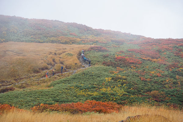 泉水沼を後にして、晴れ間が出るのを期待して山頂に向かいます