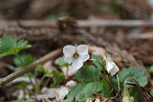 白いスミレ、青いスミレ、エイザンスミレなどが咲いています