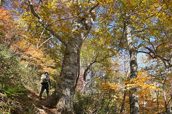 登山道わきに鮮やかに黄色く色づいている木を見つけました