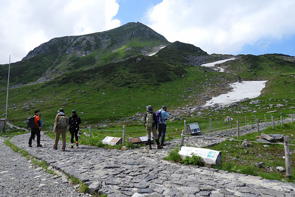 左に雄山、右に浄土山を眺め、一ノ越方向へ歩き出します