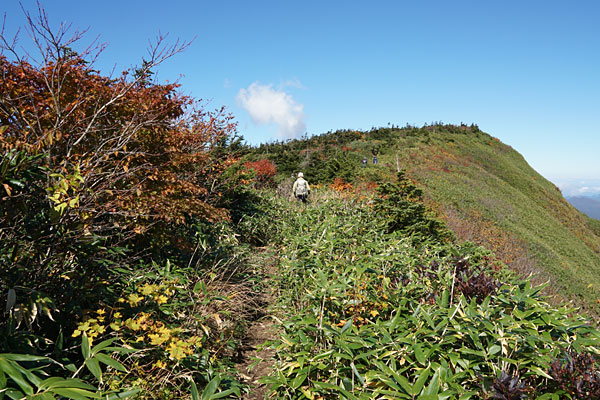 南屏風岳方向へ少し下って振り返ってみた屏風岳の紅葉