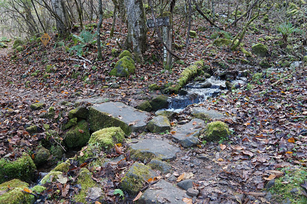 小さな流れを跨いで左へ進みます