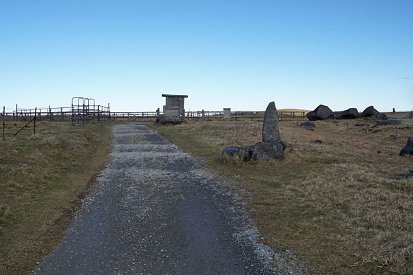 広い山頂 ケルンの先の北アルプスは雲の中です