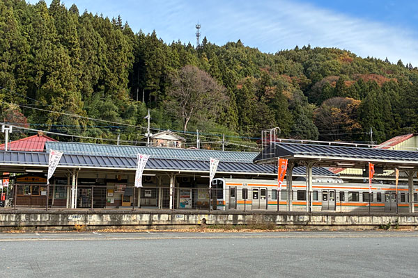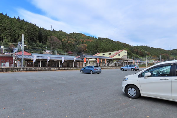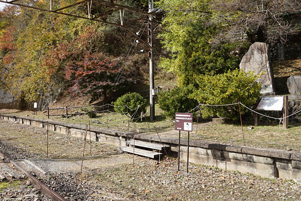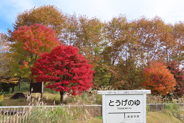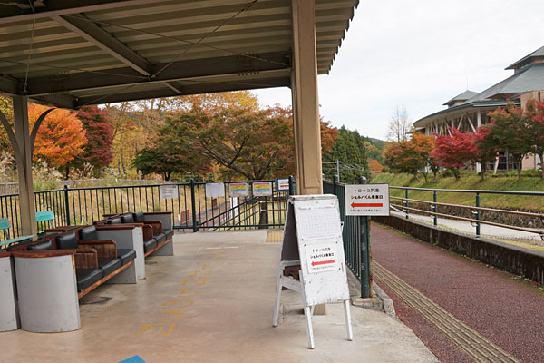 トロッコ列車の乗車口 「とうげのゆ」駅に到着 10:30