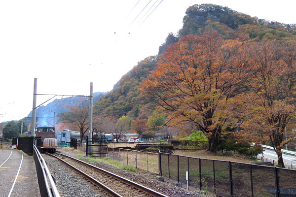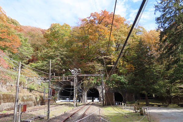 左が通ってきたアプトの道の第十トンネル 右側は引き込み線