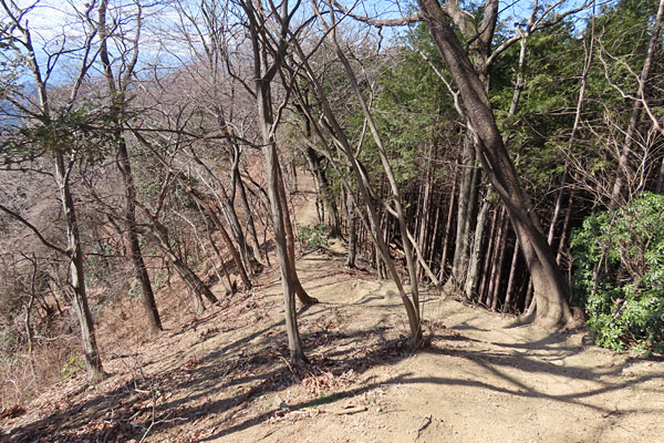雑木の明るい尾根道を緩やかにアップダウンして進むと