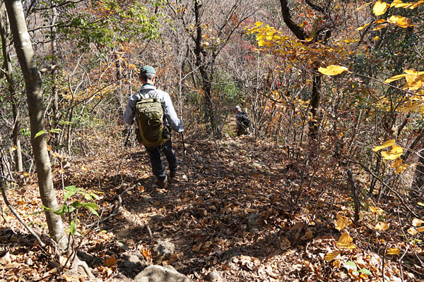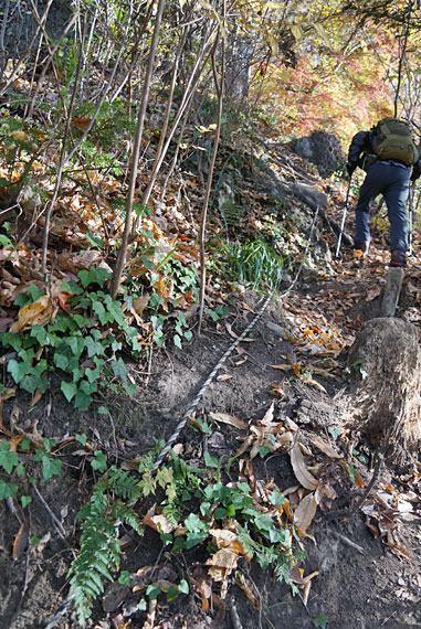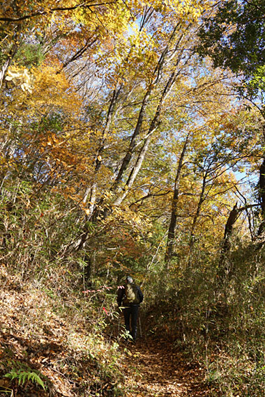 秋色に染まった登山道