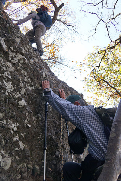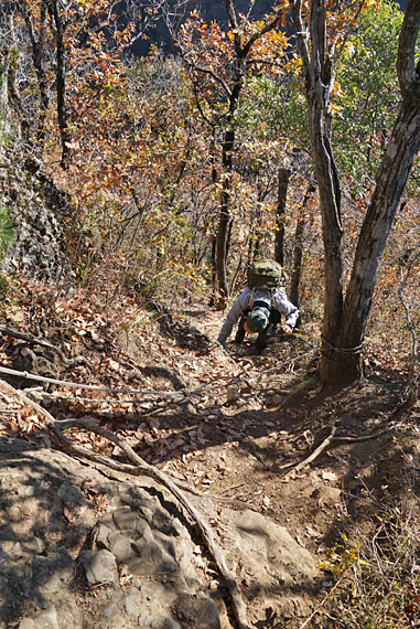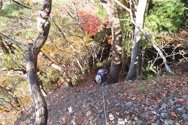 急なロープ場を登ると