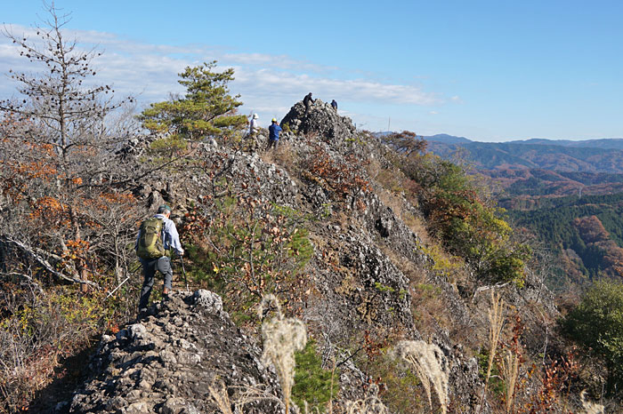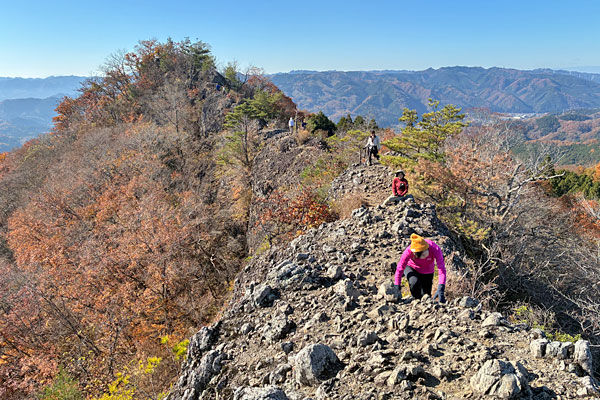 山頂手前に岩場が…