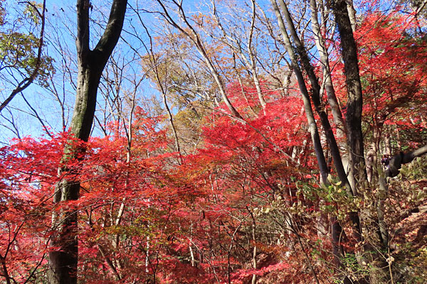 傾斜が緩やかになると一面モミジの紅葉になりました