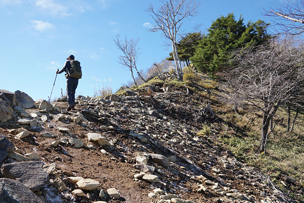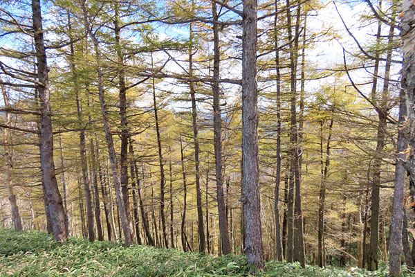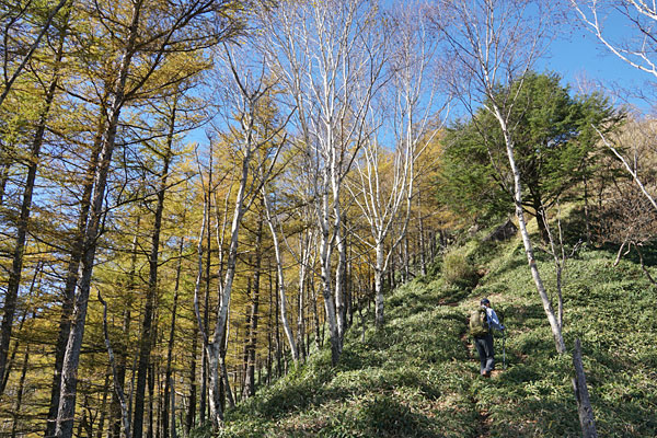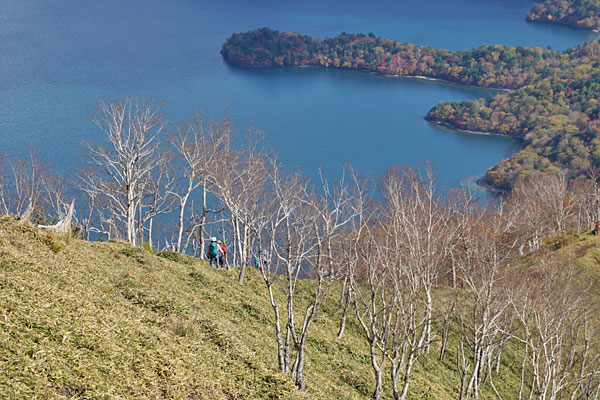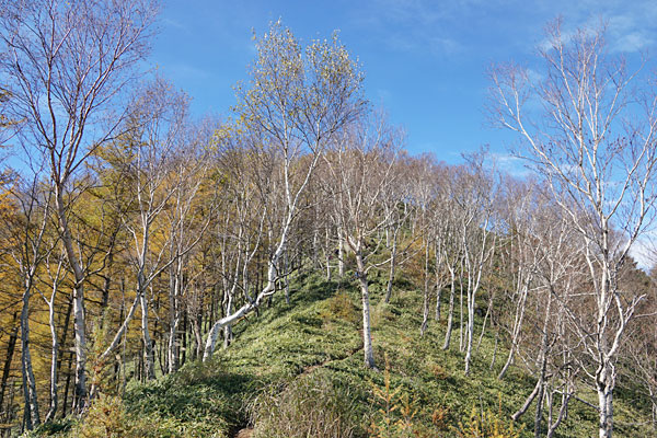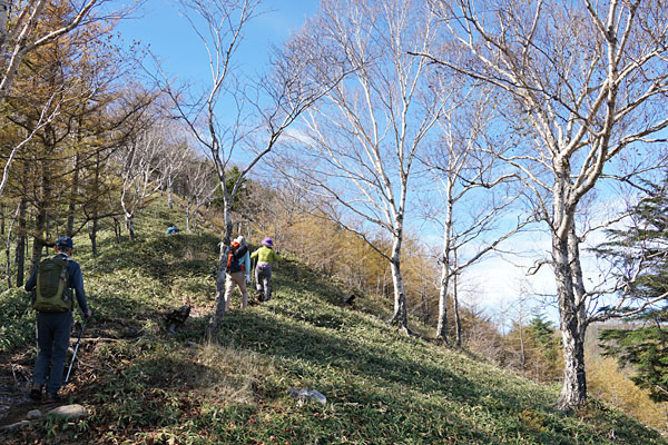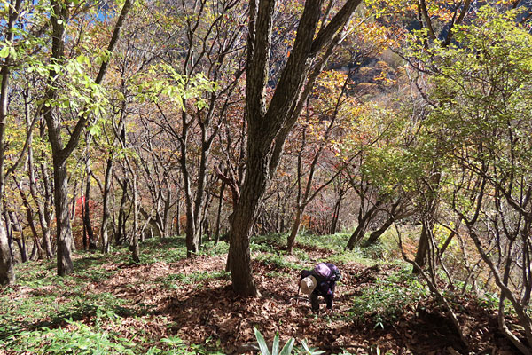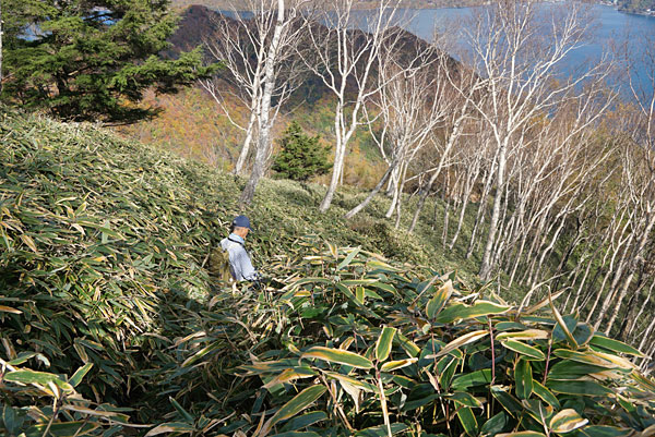笹の斜面は肩まで伸びて笹をかき分けて下りました