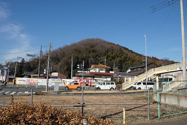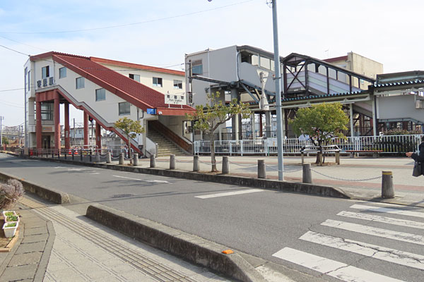 駅の歩道橋を降り、振り返って見た桜沢駅